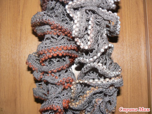2. Зимняя Дантелла в коричнево-серых тонах, связанная по инструкции к пряже...