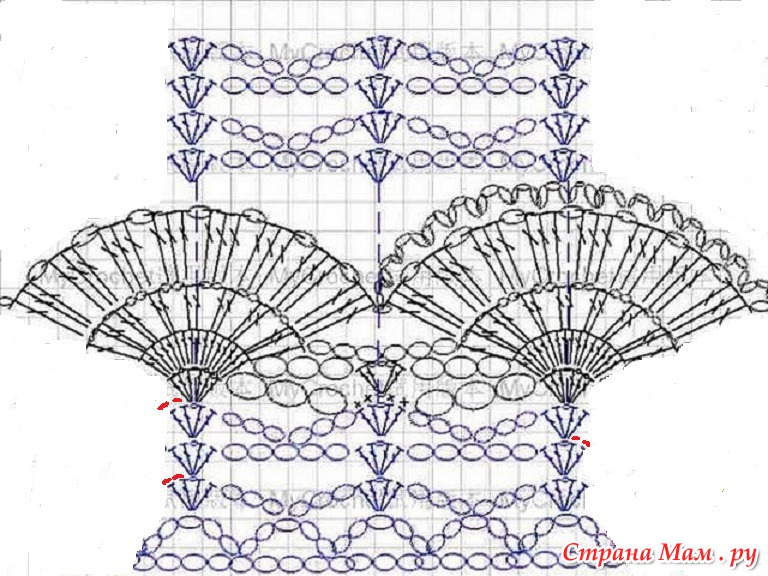 Связала сетку по схеме, рассчитала что мне нужно 19 веерочков