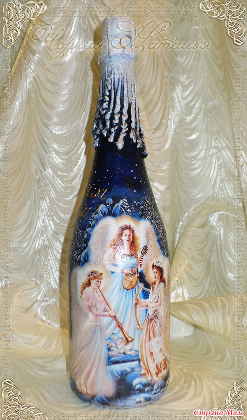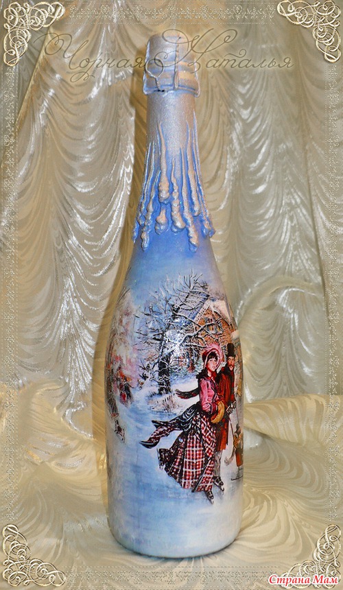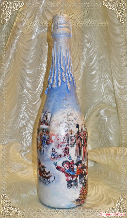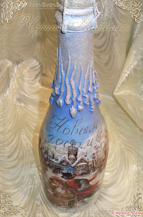 Бутылочки очень-очень симпатичные, даже завидно-как ни стараюсь, так красиво не получается. Фантазии не хватает, что-ли!? А потеки делали чем, структурной пастой? Не напишите поподробнее? Удачных творческих идей и успехов.