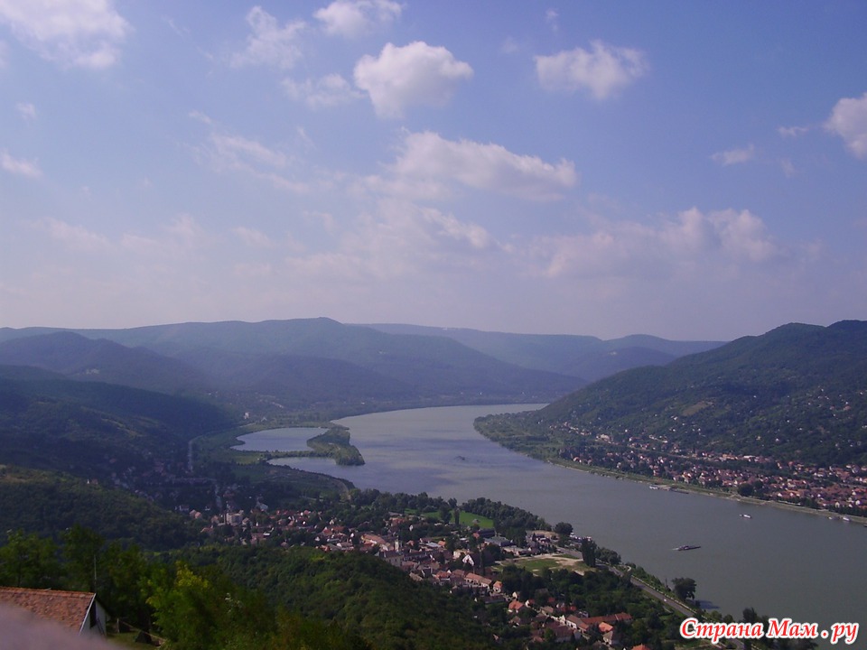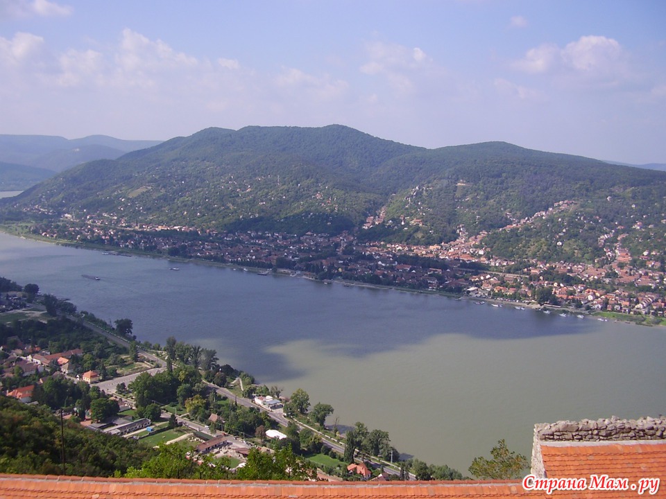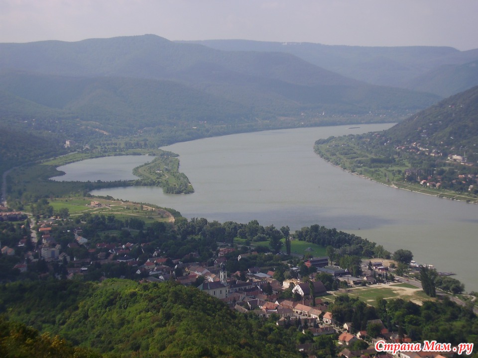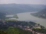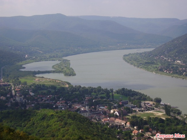 С высоты Вышеградской крепости (около 400 м) видно, как русло реки поворачивается почти на 90 градусов. Это так называемая излучина Дуная.
