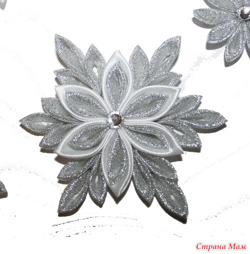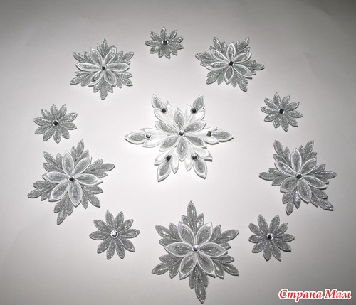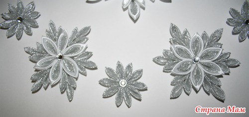 снежинки в технике канзаши сделали, коронку.
