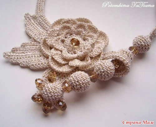 Какая прелесть. Я тоже чуточку вязала украшения. Можно обвязать небольшие колечки, Берется схемка понравившегося цветка, листика, обвязка бусины. Соединяешь все вместе. И у тебя эксклюзивные украшения!!!