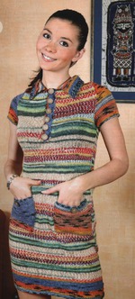 Вот такое вроде обычное платье становится необычным за счёт сочетания секционной пряжи разных цветов