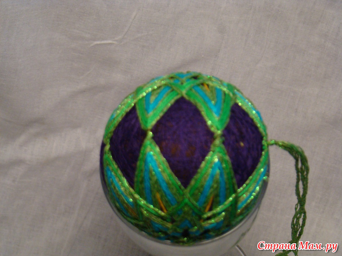 А вот этот шарик большой получился и осваивала я на нем новую технику... Получился немного кривоват (на мой взгляд), но я же только осваиваю это искусство, поэтому не судите строго