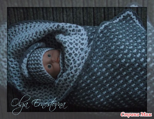 В комплект входит: двусторонний плед 75 х 75см., бесшовная кофточка, шапочка и носочки.