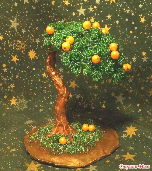 Сотворилось вот такое апельсиновое деревце в подарок пожилому человеку на юбилей. На Востоке оно символизирует здоровье и долголетие. Дерево, хоть и пожившее немалые годы, по-прежнему приносит яркие и сочные плоды.