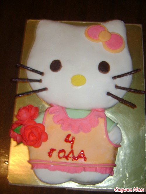 Был у моей старшенькой красотульки День рождения! Насмотревшись ваших шедевров, пожелала моя дочь два тортика. Говорит: " хочу куклу и Китти". Ну чтож пришлось сделать. Правда я еще тот тортодел, Торты печь я умею, а вот мастикой пользоваться только начала. Ну вобщем вот и они... Это шифоновый бисквит + сливки+ фрукты.
