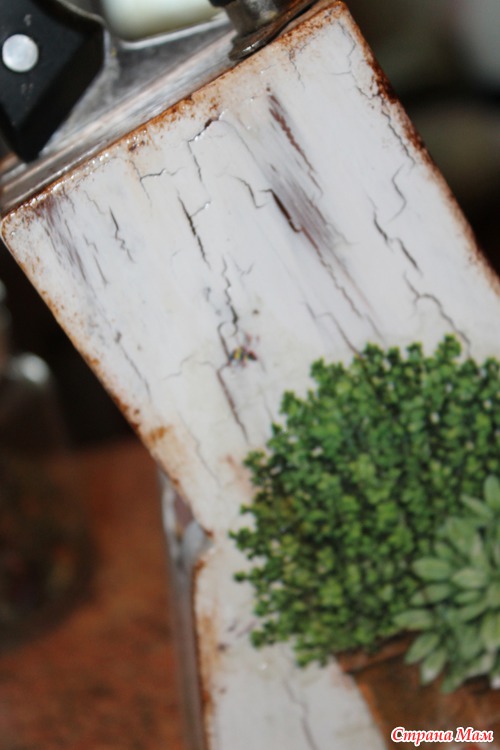 Вскрыла тёмной краской ( подбираете какой хотите цвет трещин ) высохло вскрываете пва не много разбавленное водой,ждёте когда подсохнет чтобы образовалась тоненькая плёночка затем светлой краской и сушите феном прохладным воздухом трещины получаются на глазах , очень занимательный процесс я поняла главное чтобы клей не пересох удачи обязательно похвстайтесь