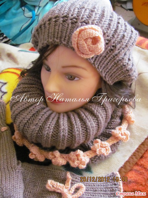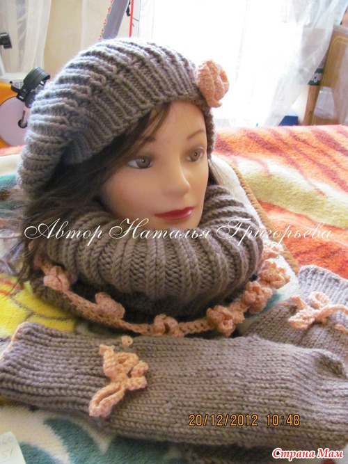Изначально была задумка просто шарф- труба и варежки, связала решила носить только как шарф и до вязала берет. Ниточка ARCTIC от NAKO, ушло 5.5 моточков. Длина трубы 50 см, ширина 65.
