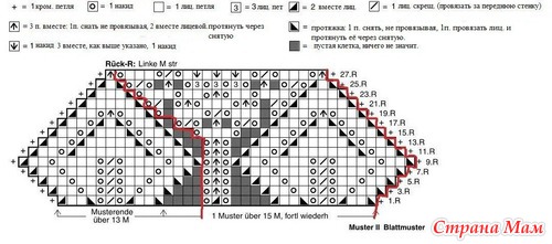 25 ряд - *протяжка, 1лиц., 2вм. лиц., накид, 1лиц. скрещ., накид, 3вм. лиц., накид, 3лиц., накид, 3лиц., накид, злиц., накид, 3вм. лиц., накид, 1лиц. скрещ., накид*