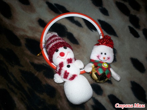 замечательные снеговички, сын их все время прячет от меня в коробочку. и пяльца одевает на голову и ходит хвастается какой он красивый.