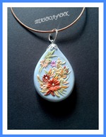 Это мои одни из первых украшений. Выполнено из полимерной глины в технике филигрань (вставочки чешский бисер, бижутерия, кожаный шнурок)
