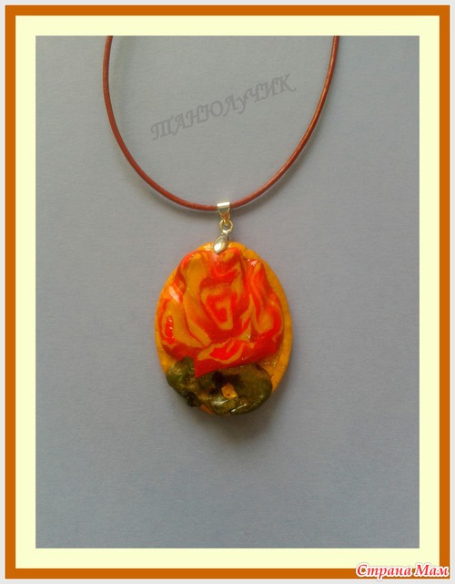 Кулон роза, эффект нанесения акварелью