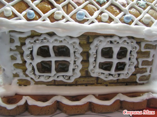 В общем домик позолоченный а из трубы - дым. Окошки карамельные.