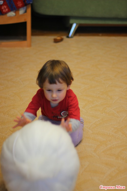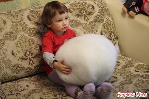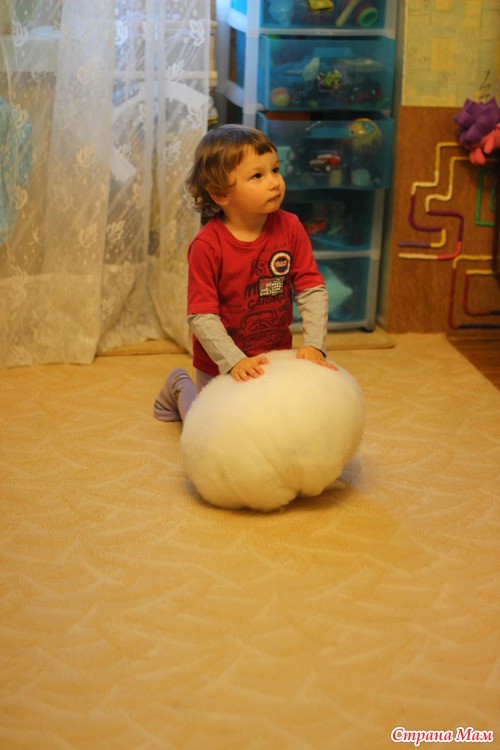 Это была бомба! Процесс Елисея просто заворожил, потряс и очень радовал. Он эти заготовки из сентипона, набитые старыми вещами уж так катал, так катал. Он на них и лежал, и обнимал, и носил по комнатам. А вот собранная баба его не впечатлила, потребовал разобрать!