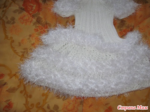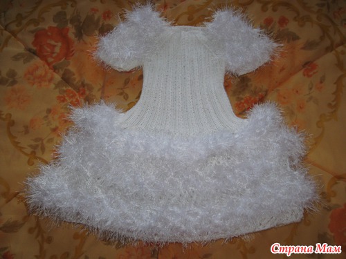 Вот и я подоспела к празднику с платьем для дочи! Вязала из пряжи "микрофибра", отделка как у всех "травкой". Вяжется очень просто! Заценитеи посоветуйте, связать ли к платью накидку из "травки"? Еще успею (праздник 27 декабря.) Читать полностью