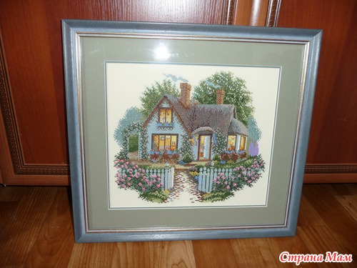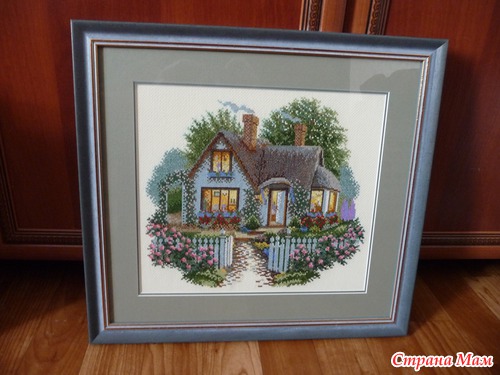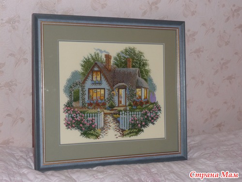 Вышивала по набору RTO "Коттедж с розами" 32х29 см, Аида 14 кремовая, мулине DMC - 30 цветов и 16 смешанных.