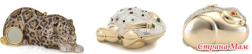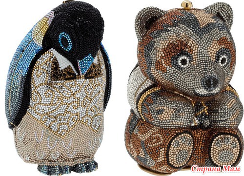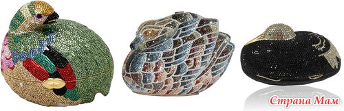 Сумочки Джудит Либер на протяжении многих лет носят первые леди, знаменитости, актрисы, их коллекционируют и передают в наследство. Эти сумки - не только признанный дорогой аксессуар, но и своеобразные анималистические скульптуры, выполненные ювелирами из стразов. Каких форм только нет: сундучки, корзинки, птичьи клетки, пчелиные ульи, геометрические формы с различными орнаментами. Забавные животные, птицы, лягушки и прочая живность сделана с умением и юмором.