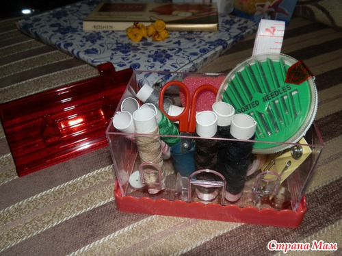 Наборчик для шитья и шоколадка там на заднем плане