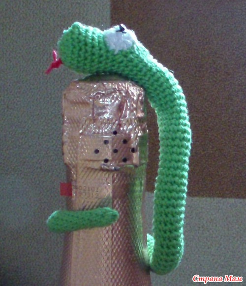 У змеек внутри проволока, так что принимают они любые позы))) Описание змеек брала здесь http://grukhina.ru/iblock/schema/igrushki/zmeja-amigurumi--simvol_2013_goda/ и здесь https://www.stranamam.ru/post/4171759/