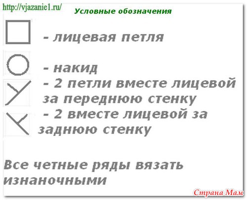 5-й ряд: 1 накид, 2 петли вместе, 2 лицевые