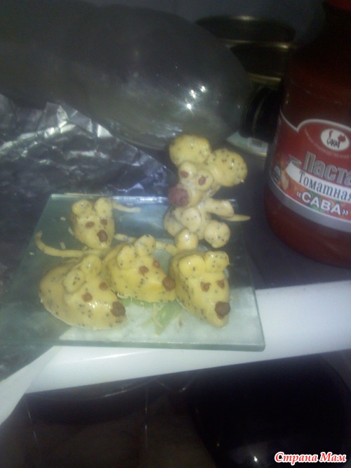 ежики отсюда делала, только придала форму другую ,обтыкала макаронами и сделала глазки с носиком из перца http://foreverculinary.com/2010/02/kartofelnye-shariki-s-myasnym-farshem/