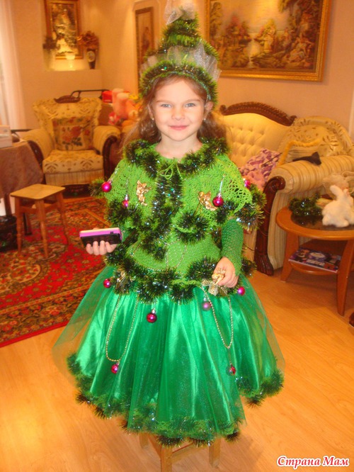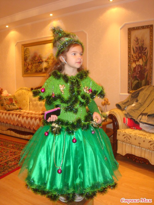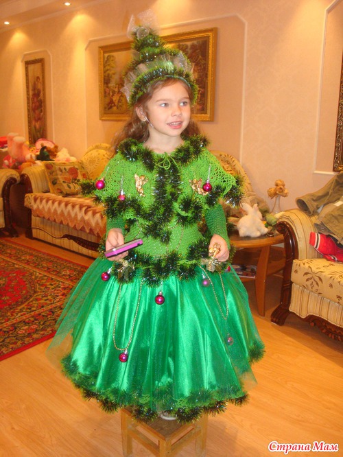 Только не жарко дочке будет? у нас на утреннике было жарко и душно, и я порадовалась, что своей Елочке не стала делать головной убор в виде елки, а сделала венок со звездой. Все детишки, что были в шапках костюмных быстро вспотели.