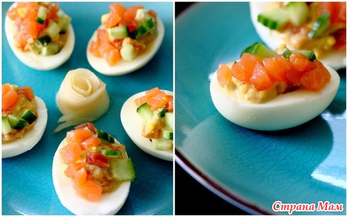Фаршированные яйца с васаби и семгой