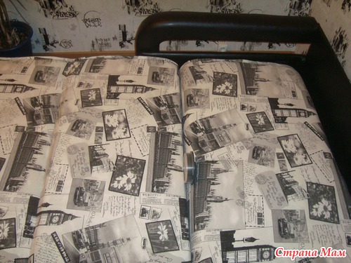 подкладывание "чего то там" что бы сравнять высоту ножек, и прикручивание шурупов мимо" этого чего то, скрытого конечно под обивкой, что привело к шатанию ножки,