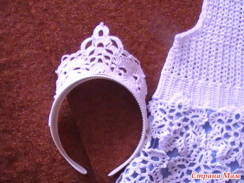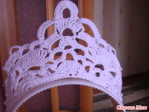 Корону взяла отсюда https://www.stranamam.ru/post/2301267/ корона №9. нитки виолет, крючок №1. Накрахмалила и приклеила на клей на ободок, украсила бисером.