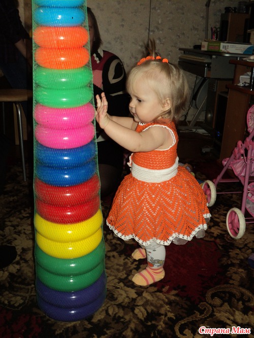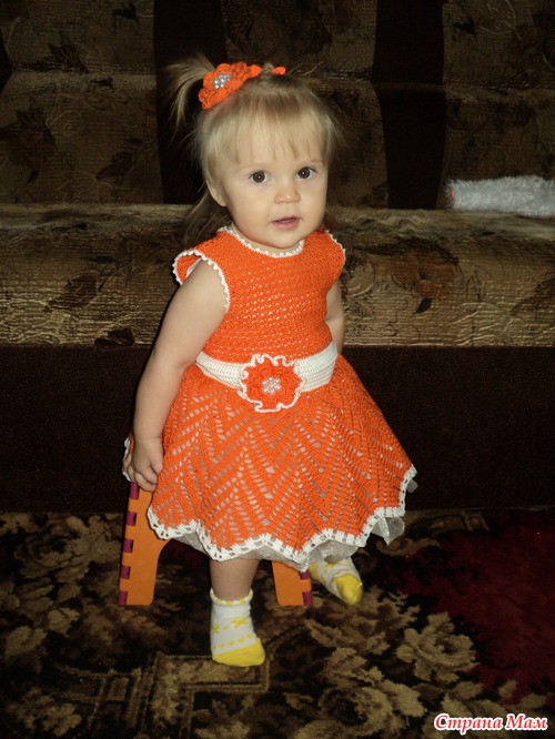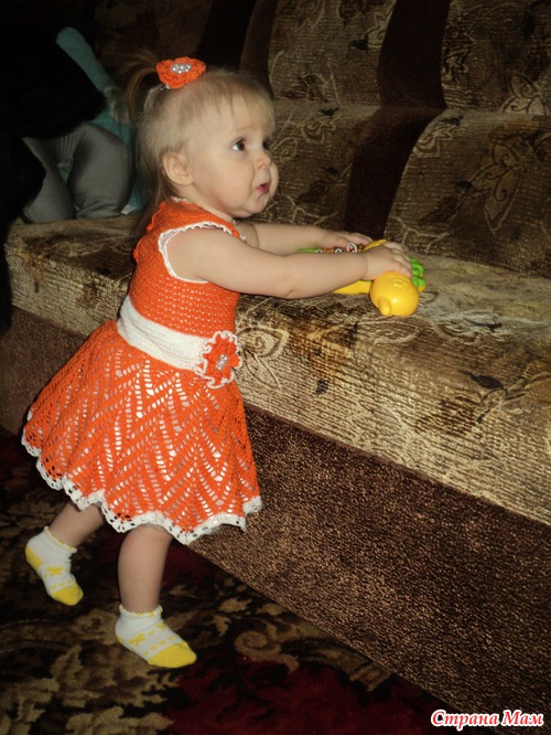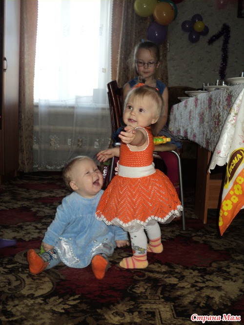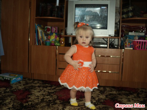 Вот и мы смастерили наше платьице к встрече Нового года. Наш первый утренник будет только 27 декабря, а 22 день рождения у моей Любашки, нам годик, вот и решили устроить генеральную репетицию нашему наряду и поучаствовать в конкурсе рукодельниц.