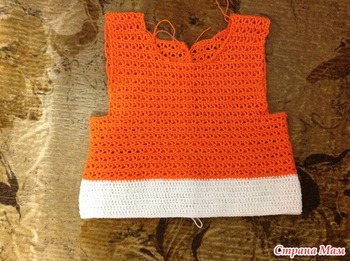 Взяла ниточки СОСО белый моточек и оранжевый, на все ушло грамм 170, решила утеплиться, вдруг в музыкалке прохладно, на болеро взяла моточек белой травки... И вот такую