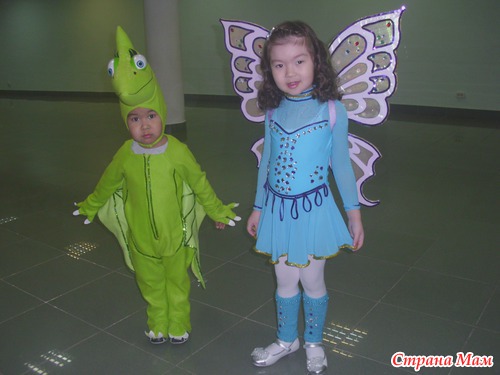 Ну вот сегодня был первый утренник, билеты на представление во дворце получили у мужа на работе, вчера была последняя бесонная ночь, добивала костюмы вот такие были мои детки. Костюм сыну купила по СП в америке ждали 2 месяца с момента оплаты и выкупа, потом расшила пайетками и немного ушила. А вот моя фея Винкс Стелла (отговорила одевать парик) купила танцевальный купальник и расшила его, связала гетры и также расшила, крылья каркас заказала в драмтеатре у художника а украшала сама. Ну вот детки были рады костюмам, ну а я конечно же счастлива глядя на их мордашки. Завтра утренники в садике.