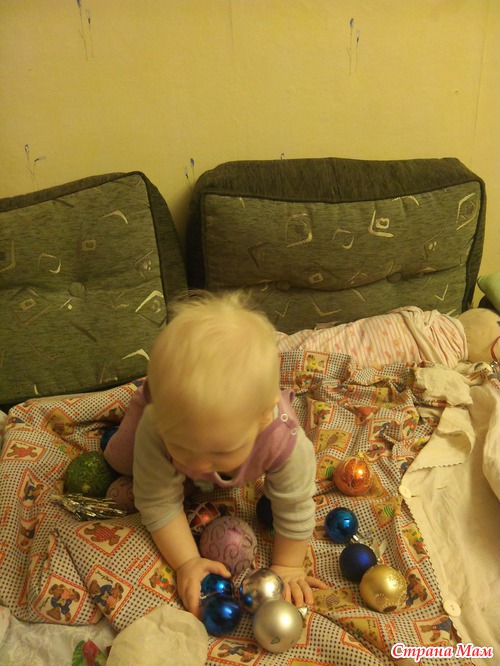 пока я делала календарь (календарь, для которго персонажи нужны были, покажу уже скоро) мои достали игрушки, елку-то мы еще вчера достали. Дуня уже не могла терпеть, а я была слишком занята. Вот они с папой достали игрухи и наконец я освободилась. Вот так Егорка нам помогал, он долго охотился за этими шарами, и мы дали их ему