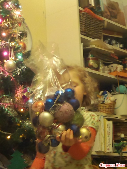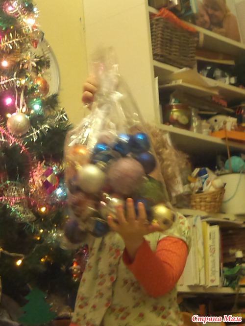 А вот сколько шаров осталось. Говорю:"Дуся, ну нельзя же все игрушки на елку повесить?" она:" почему?" Я:" ну не влезут, не красиво будет" Дуня:" будет красиво, надо постараться-влезут"