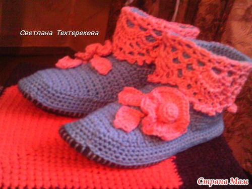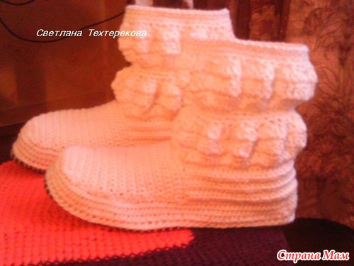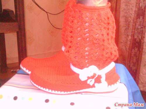 В интернете нашла обалденные сапожки на твердой подошве, искала, искала описание, но так и не нашла, пришлось помучиться самой по картинке, вот такое навязала на заказ по моему