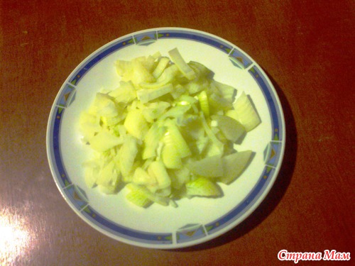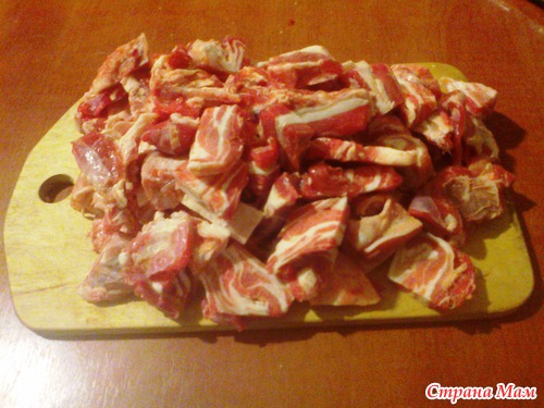 Мясо. Я взяла баранину. Порезала ее не очень мелко. Брала на глаз