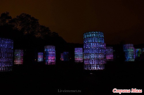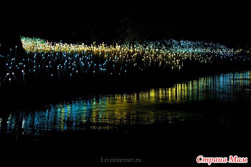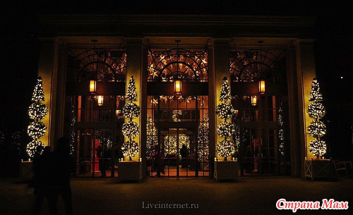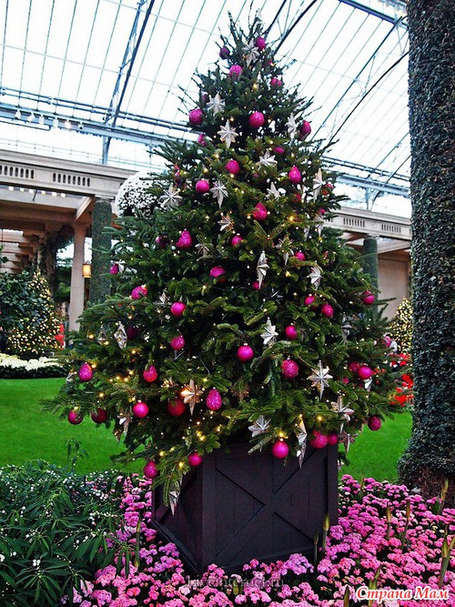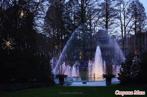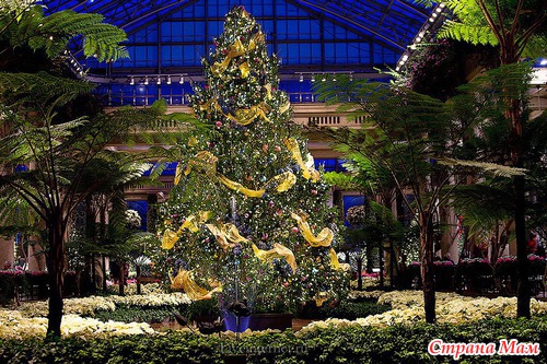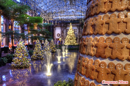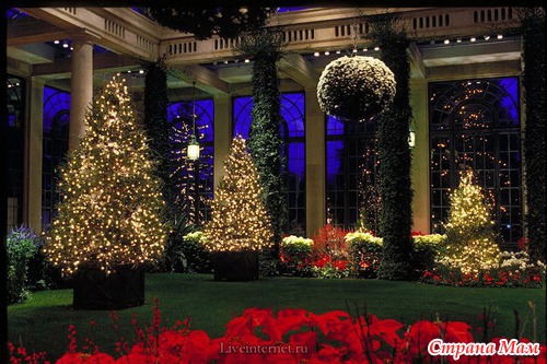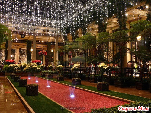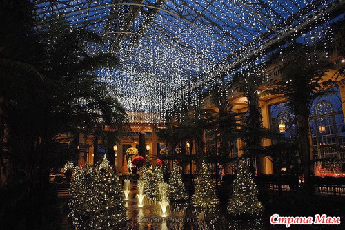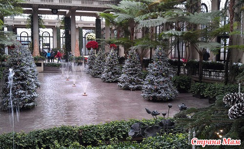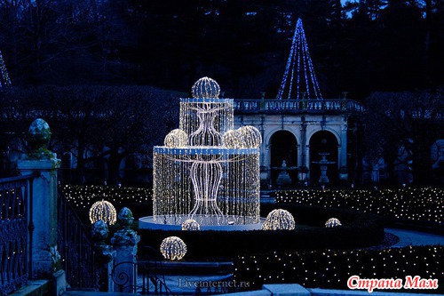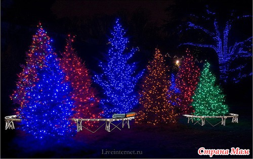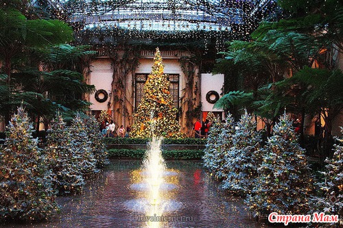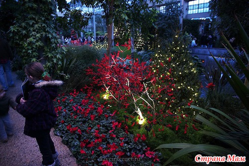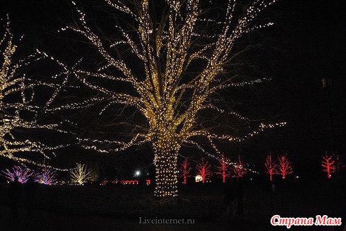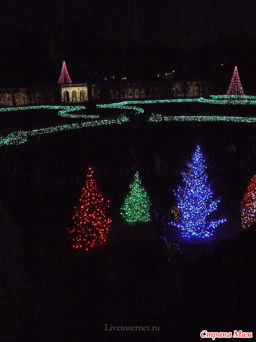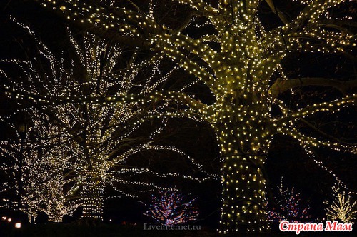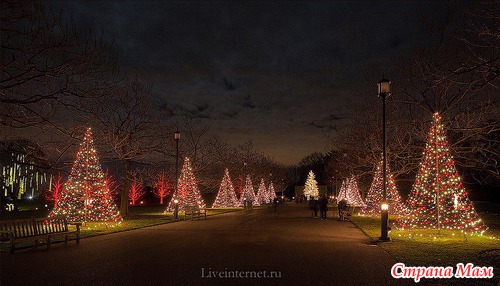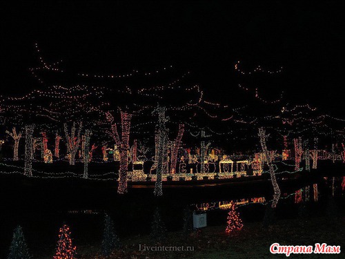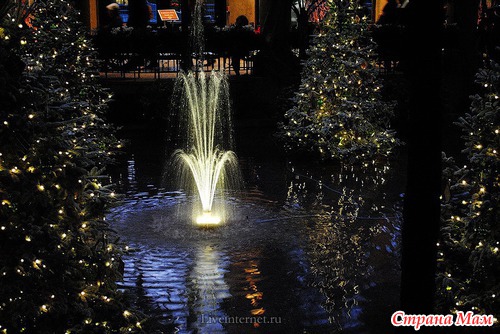 Для создания этой красоты 40 миль проводов на деревьях преобразуются в сверкающие звезды, снежинки, а цветные фонтаны отражают всю красочность Рождества.