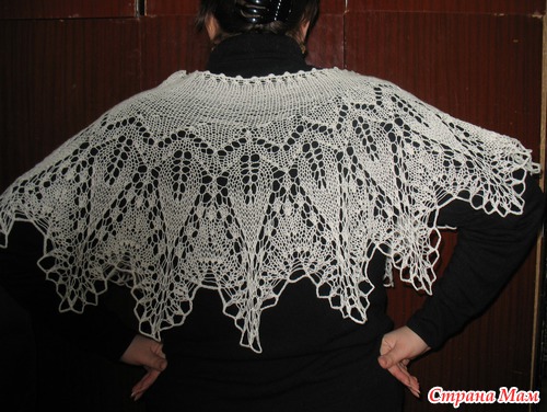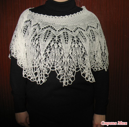 Нитки Семёновская пряжа Аэлита, в 100 гр 781 м. 60 % шерсть, 40 % акрил. Вес фишю 55 гр. Спицы № 4. Размер в широкой части 45 см, по бокам 26 см, верх 84 см, низ 320 см. Схема тут http://club.osinka.ru/ Читать полностью