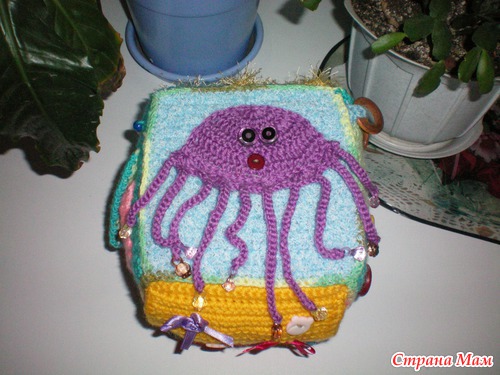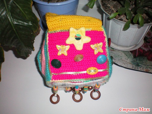 Всем добрый вечер. Давно не показывала своих рукоделок, вот выдалась свободная минутка и выставляю на ваш суд свой развивающий кубик. Давно заглядывалась и вот решила на НГ сделать племяннику подарок, ну и попробовать свои силы. Вязала в основном крючком из остатков пряжи(пристроила почти всё)