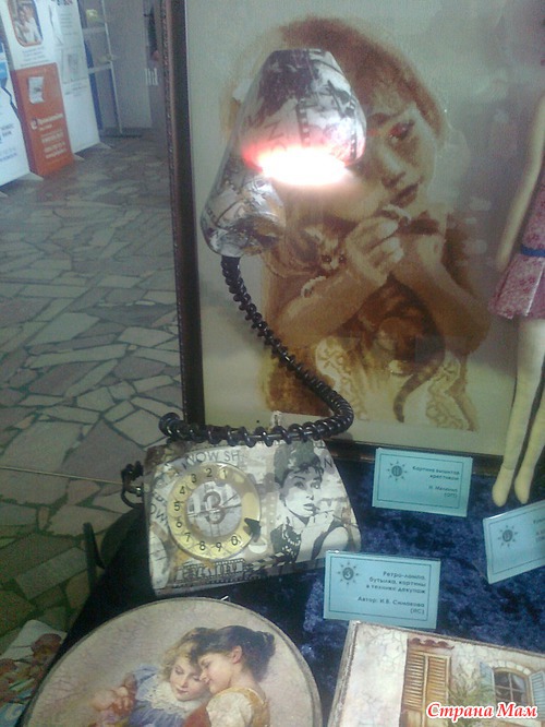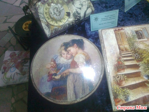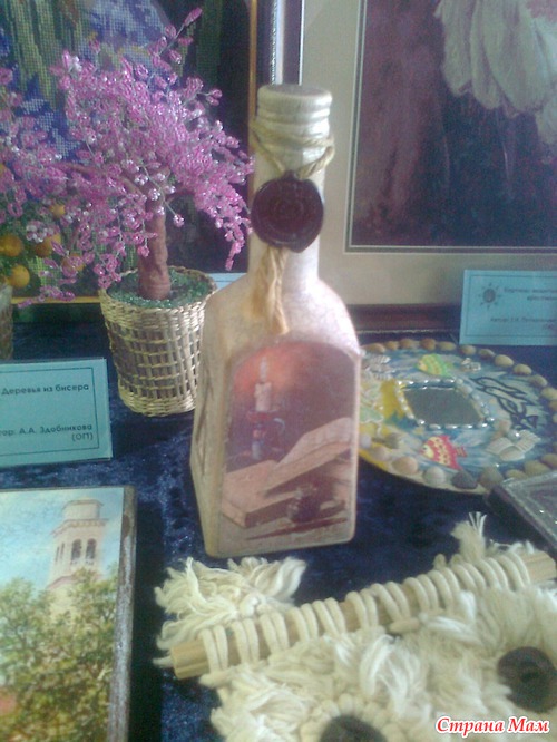 Работ не очень много, но зато какие они все интересные и необычные. Там и вышивка, и мой любимый декупаж, и кукла-Тильда, и макраме, и бисерные деревья, и много всего другого. Нужно было проголосовать за понравившуюся работу-я конечно же ЗА декупаж