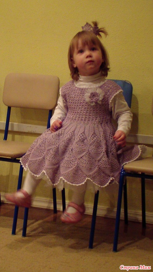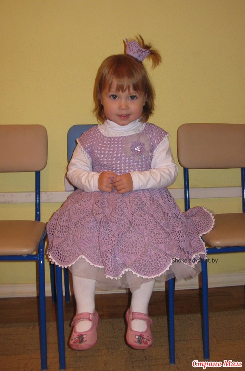 Вот такой наряд связался для моей пуговки. Вязала из ажурной пехорки ушло чуть больше 200 гр (это вместе с короной