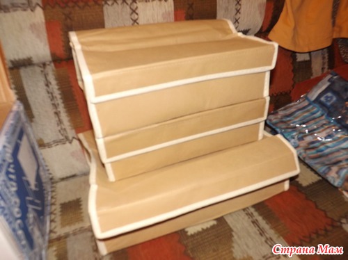 Кофры оказались мягкие. То есть без жесткого дна... В комплекте у каждого кофра- 2 картонки. Я подумала, что их надо на дно класть... Вот так. Кстати, на фото понятно, что ячейки НЕ пришиты к дну, что ИСКЛЮЧАЕТ возможность хранения мелочей, которые просто будут перетекать из одной ячейки в другую.