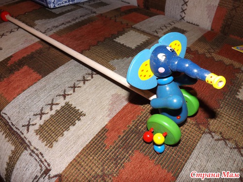Деревянный слон на палочке-сыну. Оказался несколько меньше по размеру, чем я представляла, но симпатичный.