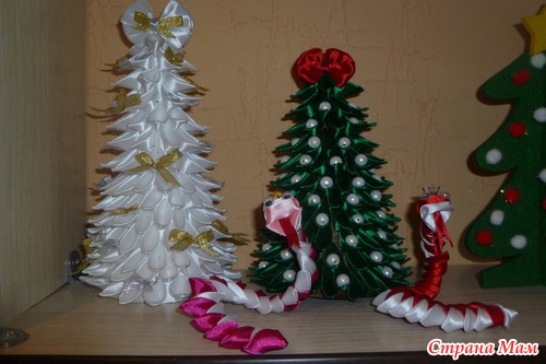 На Новый год захотела порадовать своих близких и знакомых новогодними елочками и змейками. Так уж они мне понравились!!! Огромное спасибо за МК елочек и змеек!!!