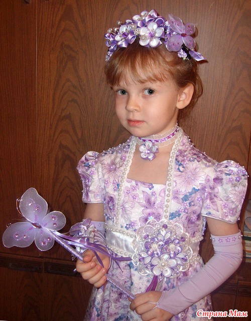 Пошла череда утренников в детских садах. Вливаемся и мы в этот дружный хоровод. В этом году у нас костюм "Фея Фиалка". Платье покупное, расшила его вручную бисером, бусинами и пайетками. Перчатки тоже украшены пайетками и бисером. Фотографии с генеральной примерки: