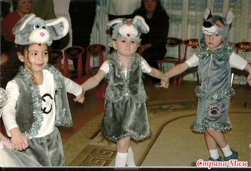 На следующий год мы были мышкой, костюмы нам выдали в детском саду и сказали обшить мишурой