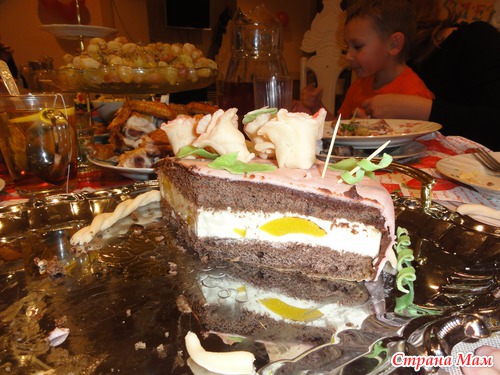 Выравнивание пока не получается, розочки тоже так себе, но торт всем понравился.