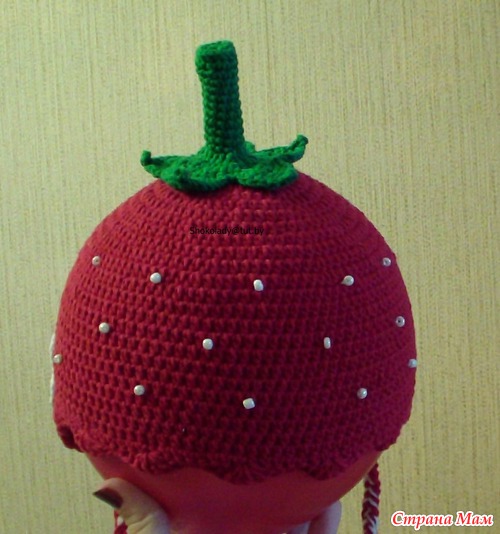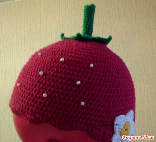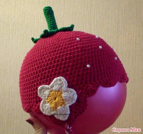 - милости прошу в гости https://www.stranamam.ru/album/3145671/, https://www.stranamam.ru/album/2461651/И вот последняя шапочка в этом году в подарок к курточке на Новый год для 1,5-месячной крохи. Правда шапочка навырост - к весне, связана из джинса крючком 2,5. Очень хотелось связать мне шапочку-снеговичка, но заказали клубничку - снеговичка не захотели(