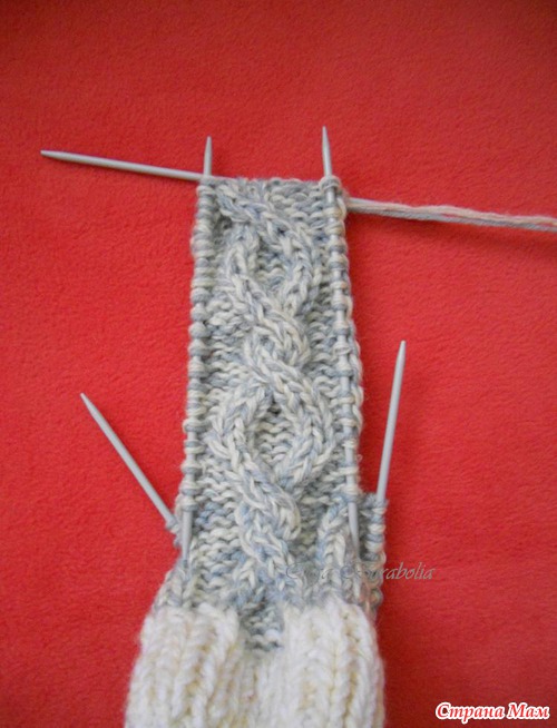 после 9 ряда (перекрестили петли на косу) выделяем эти 12 петель и вяжем только их согласно схеме ( лицевые и изнаночные ряды)